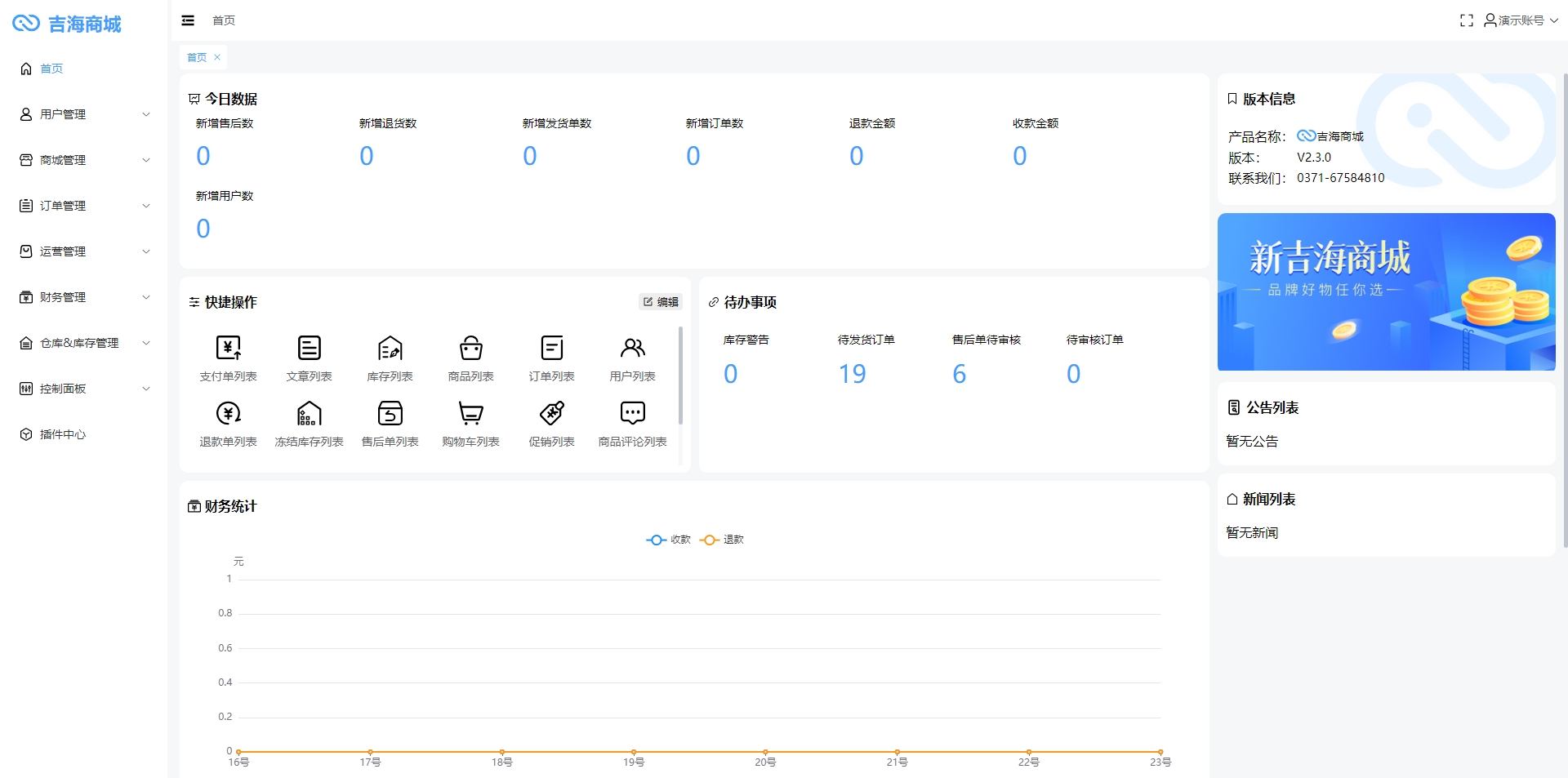 吉海商城是一款后台基于thinkphp8.0的开源框架,前端基于uni-app框架、vue3开发语言以及elementplus开源组件的优质的电商系统。