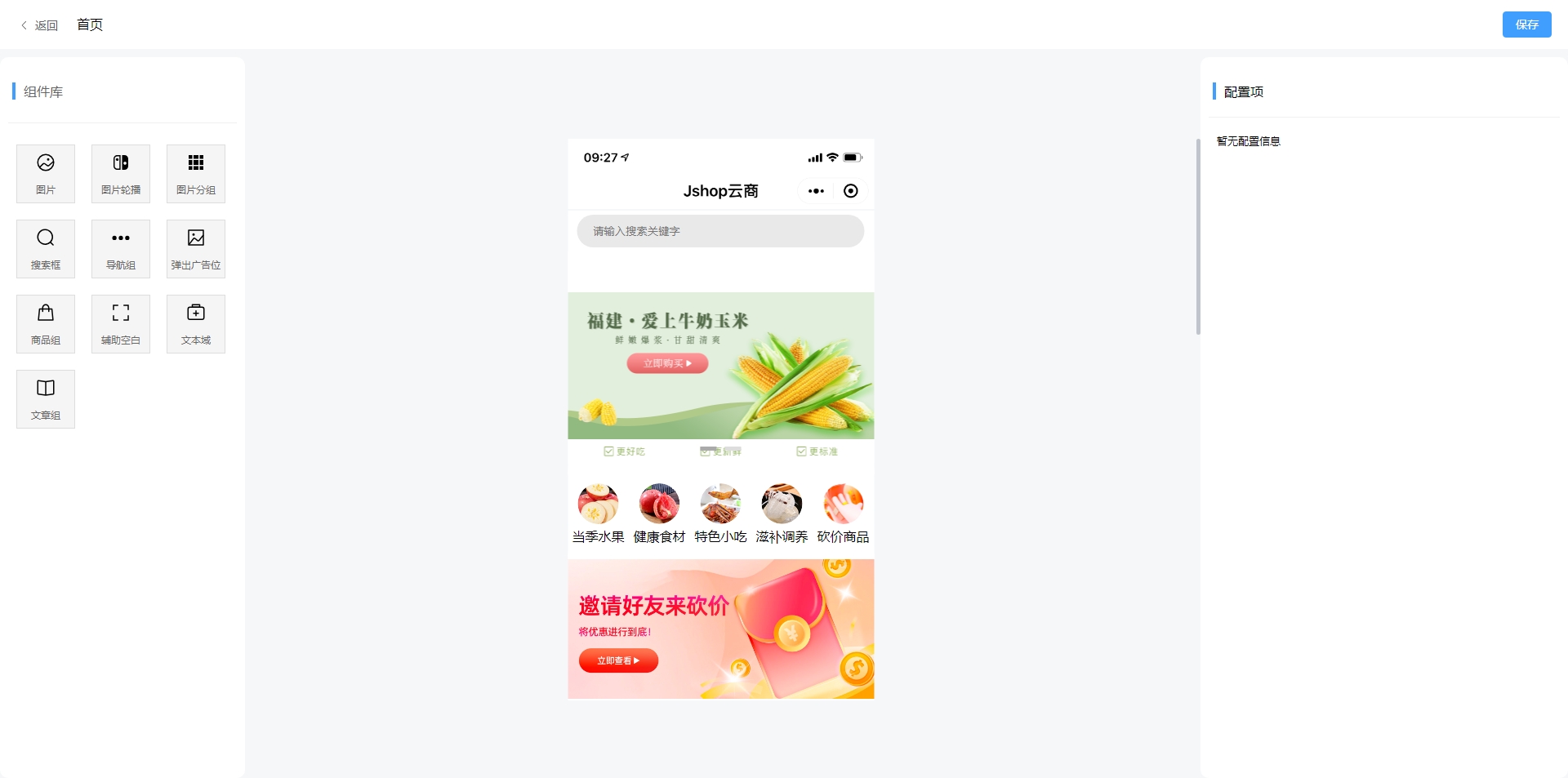 针对各个客户端沉浸式体验,可自定义客户端的页面风格,预置丰富的拖拽组件。